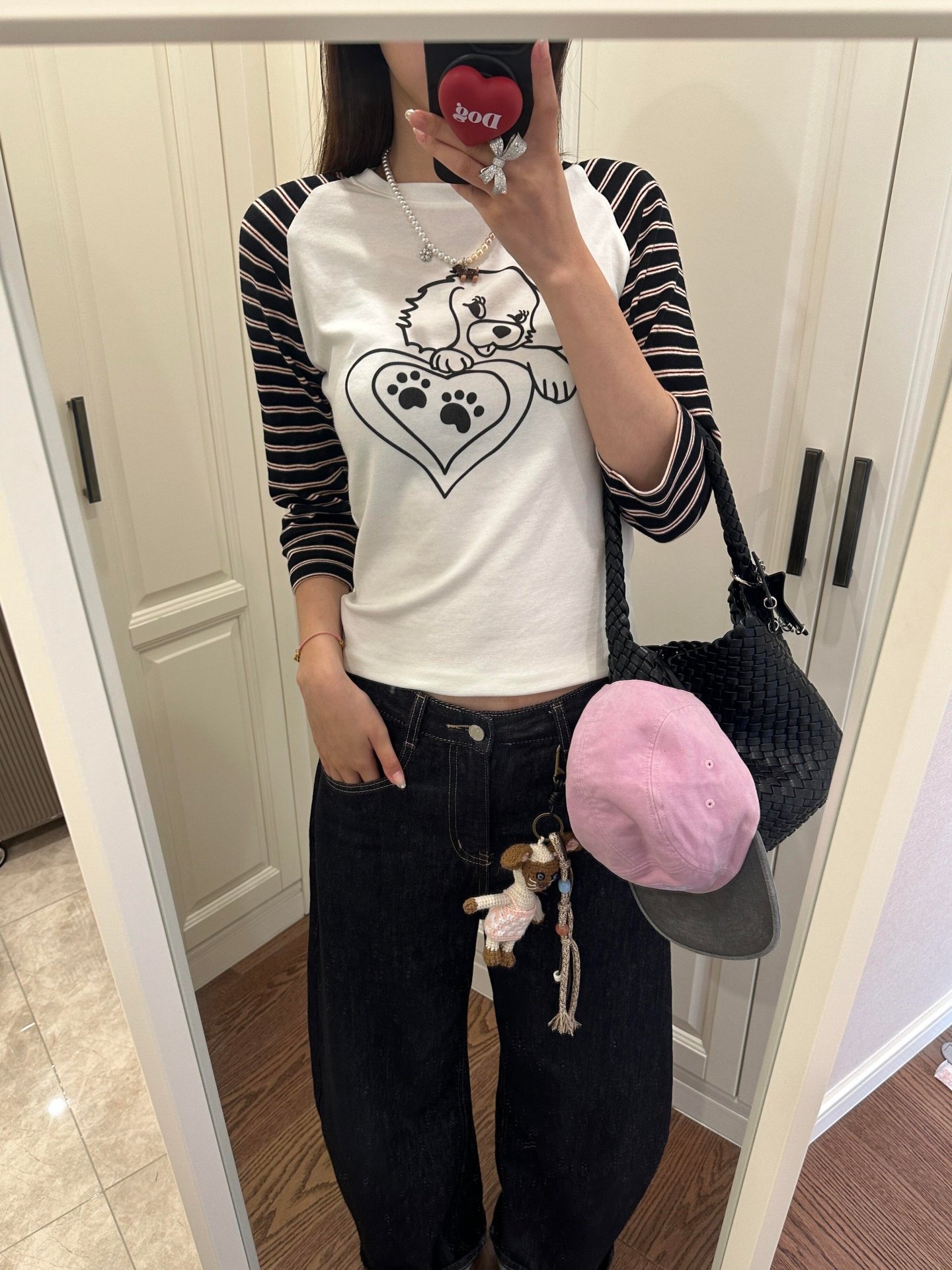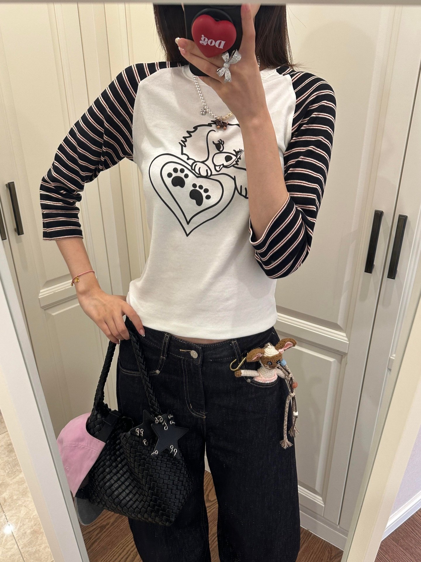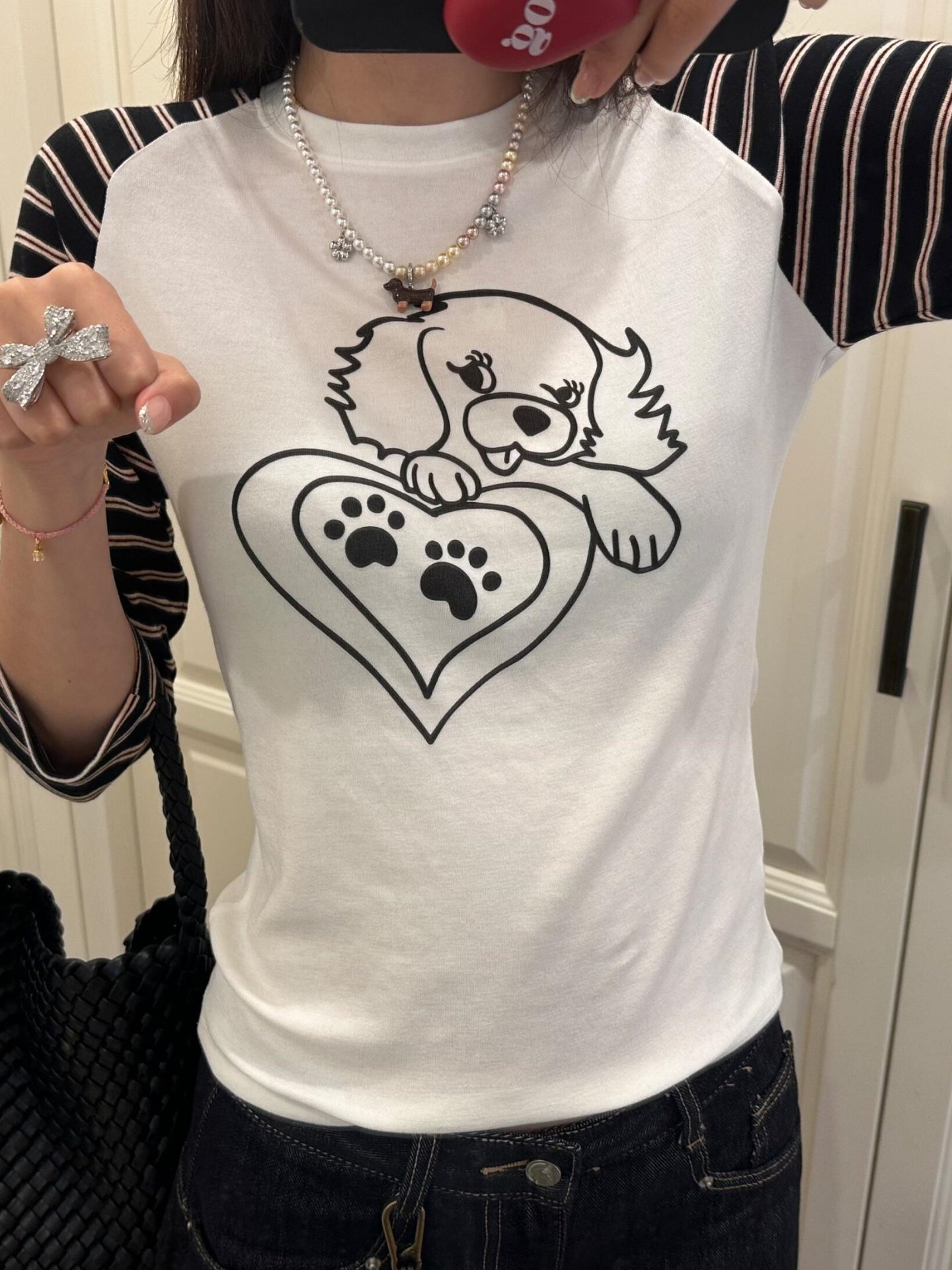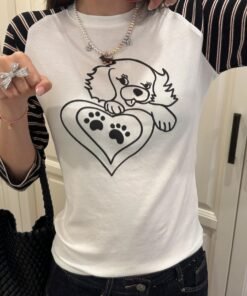 Vapetix S-XL 21-ply Cotton Korean-style Striped Puppy T-shirt for Women Autumn Fitting Slimming Sleeveless Shoul