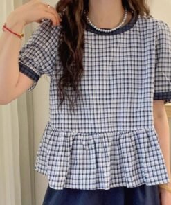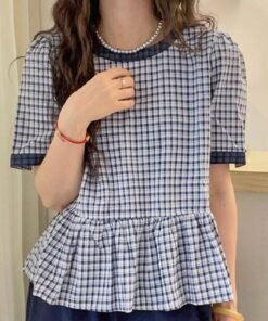Vapetix S-XL 80% cotton, 20% polyester checkered fabric, leisurely and beautiful color-blocking checkered round-