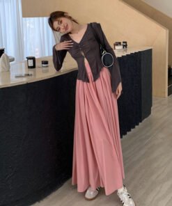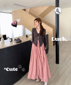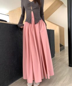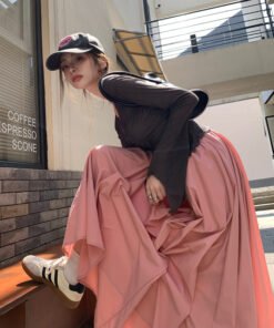 Vapetix S-XL Actual shot of 2024 spring new style pink heavy industry large swing skirt for women high waist lon