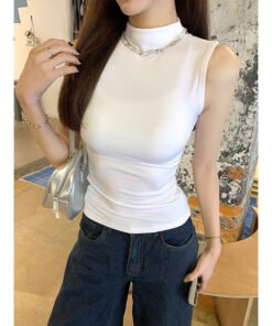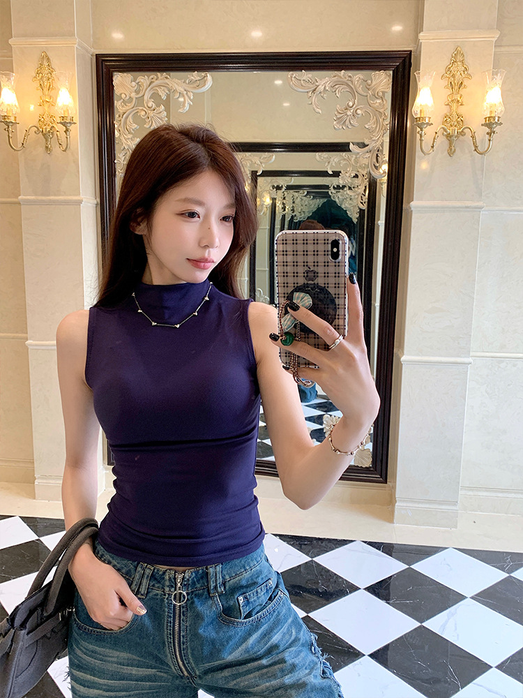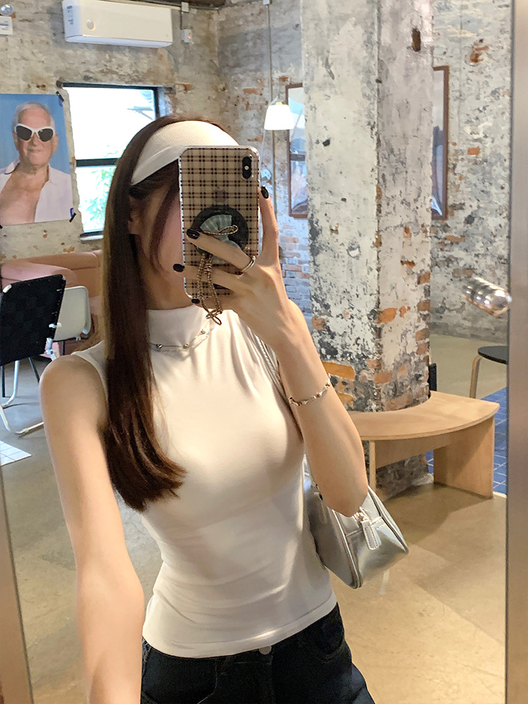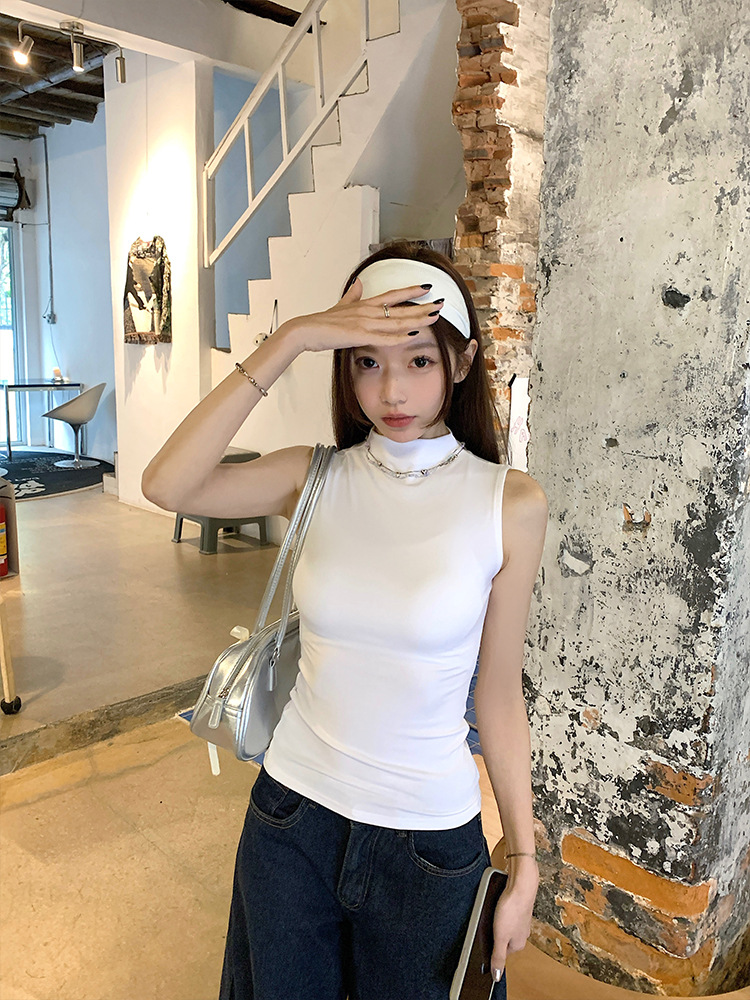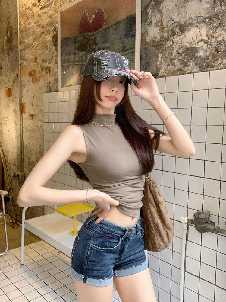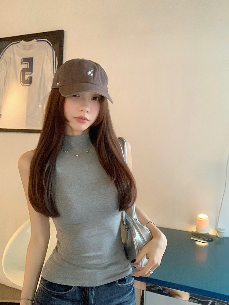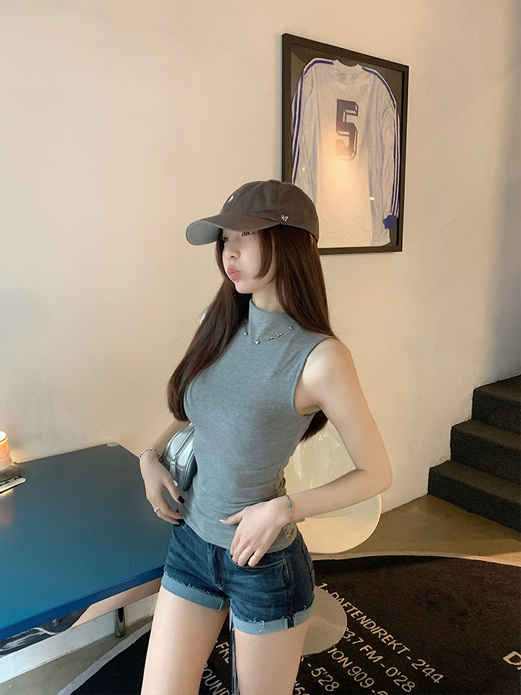 Vapetix S-XL American Style Spice Girl Grey Half-high Collar Sleeveless Vest Women’s Summer High-end Sense Chic