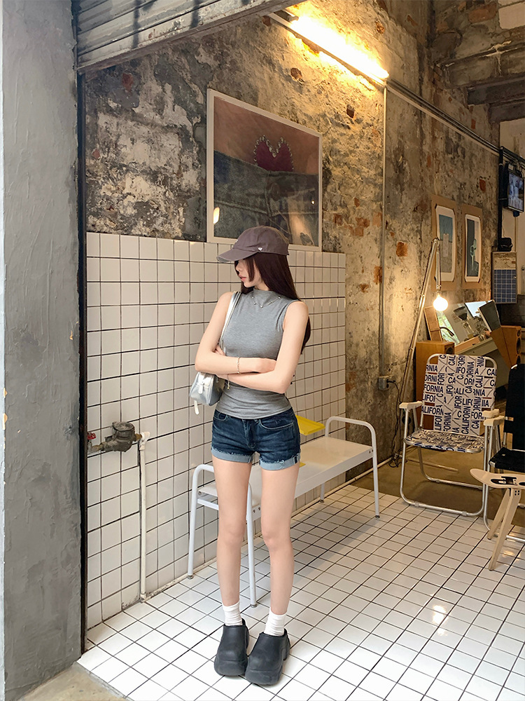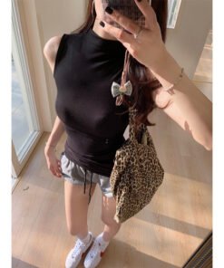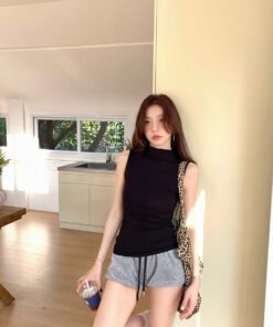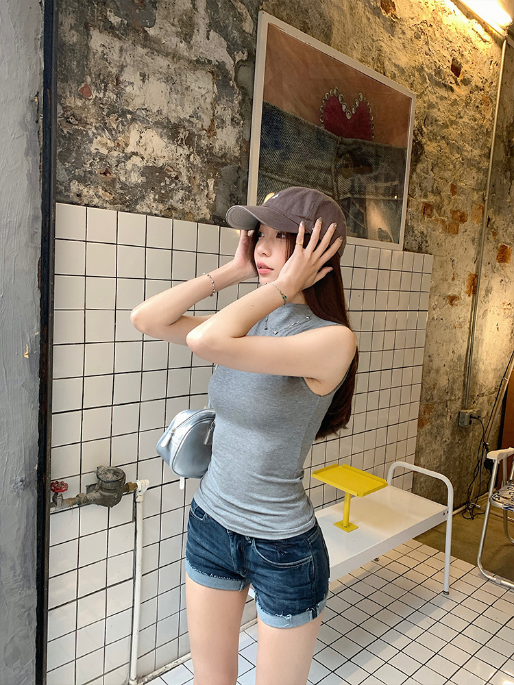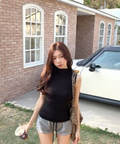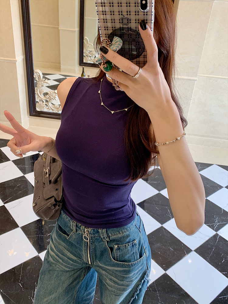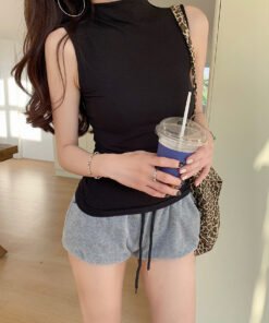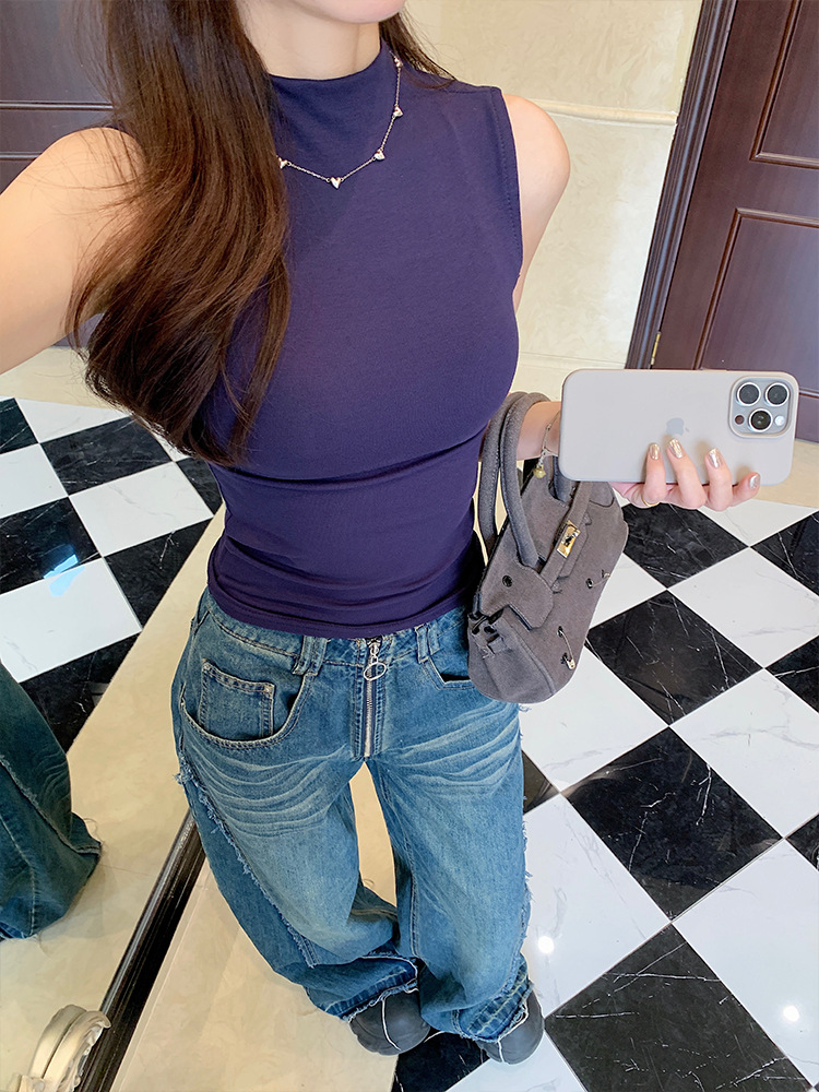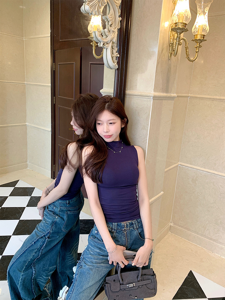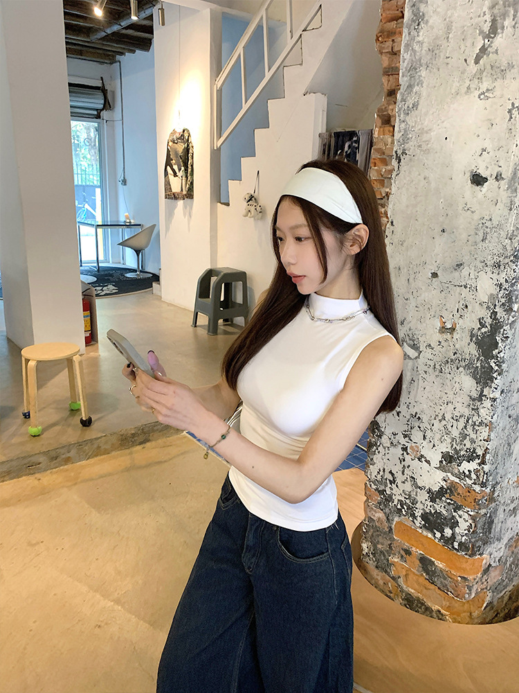 Vapetix S-XL American Style Spice Girl Grey Half-high Collar Sleeveless Vest Women’s Summer High-end Sense Chic