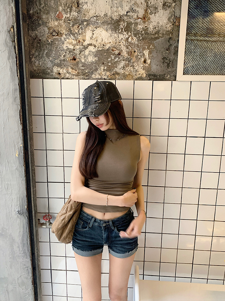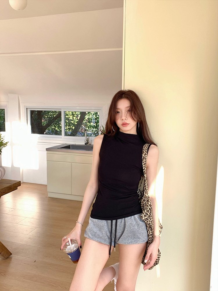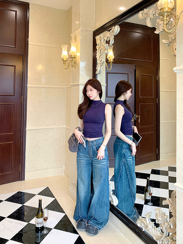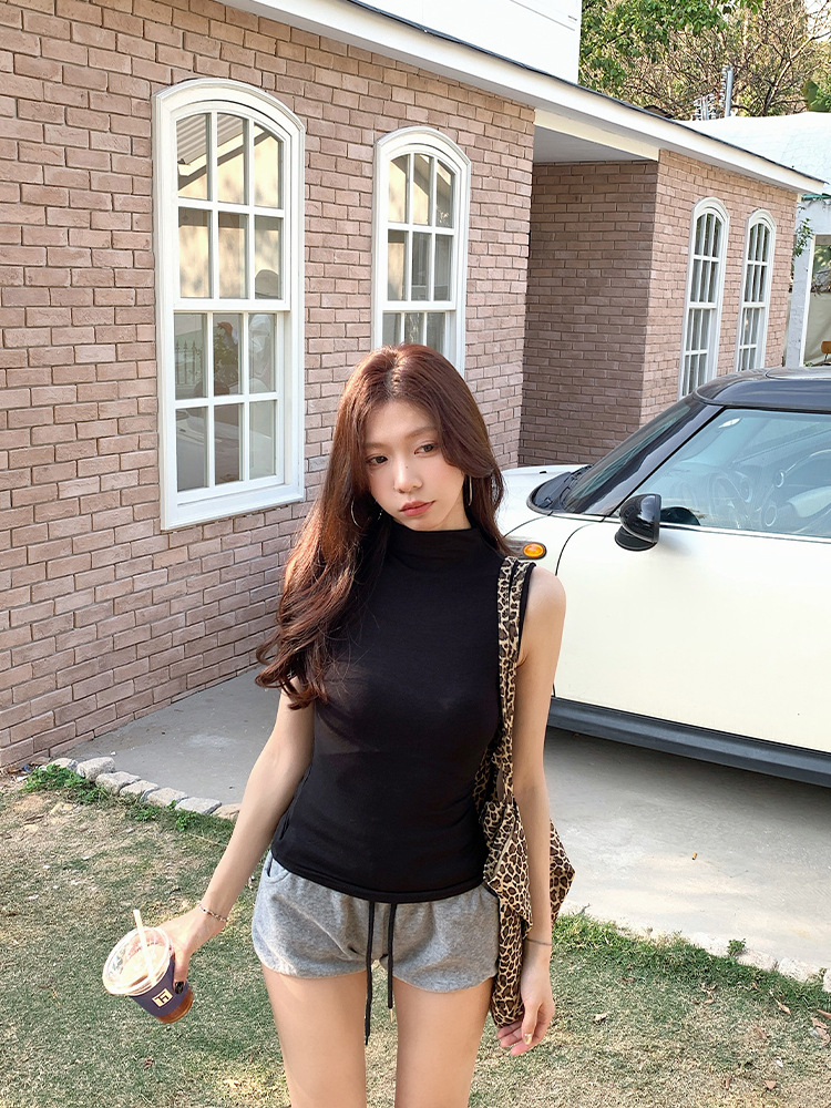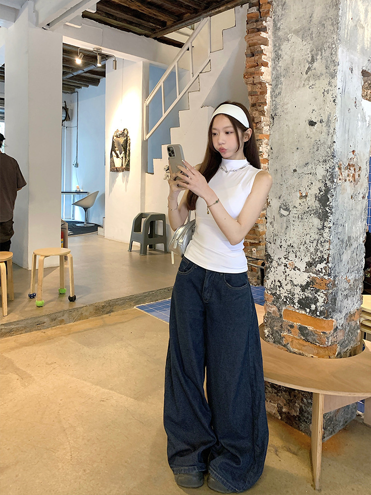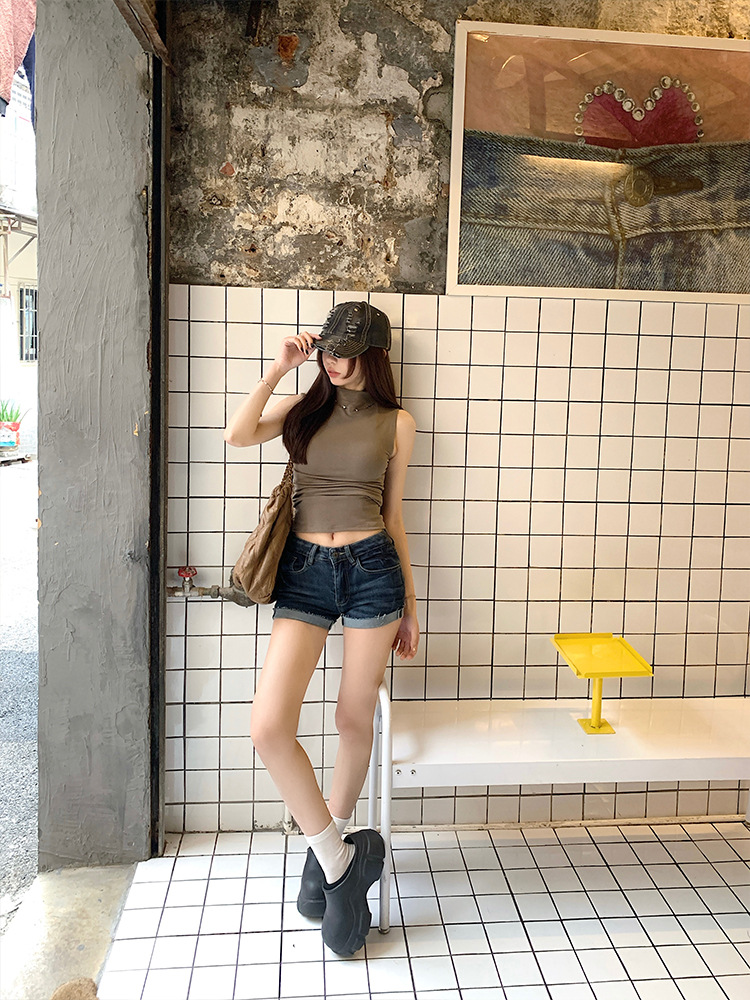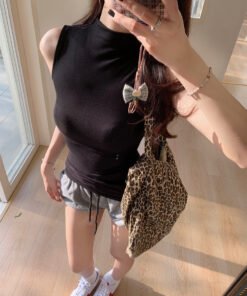 Vapetix S-XL American Style Spice Girl Grey Half-high Collar Sleeveless Vest Women’s Summer High-end Sense Chic