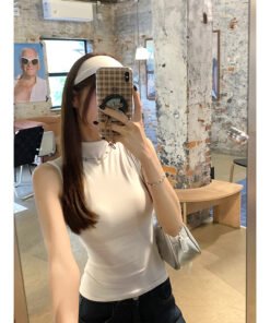 Vapetix S-XL American Style Spice Girl Grey Half-high Collar Sleeveless Vest Women’s Summer High-end Sense Chic