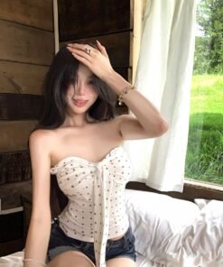 Vapetix S-XL As you please 1*1 white polka dot strapless backless women’s tight sexy bodycon top under short-sle