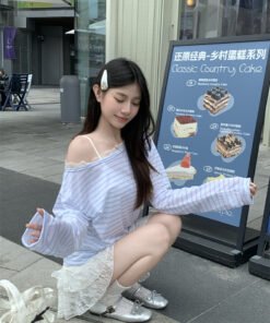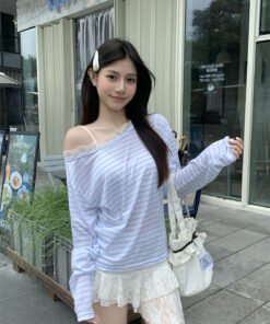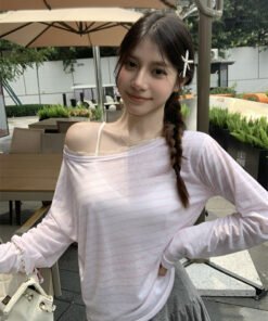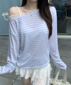Schreibe die erste Bewertung für „Vapetix S-XL Authentic Photograph Real Off-the-Shoulder Striped T-Shirt for Women Summer Korean Style Lazy Wind“ Antworten abbrechen