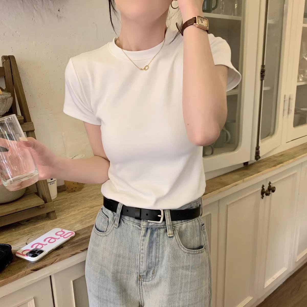 Vapetix S-XL Elevated-Style Threaded Off-Shoulder Crew Neck T-Shirt for Women | Summer Short-Sleeve, Slim-Fit, V