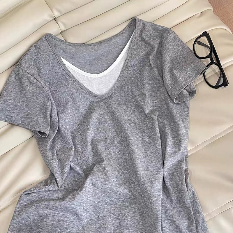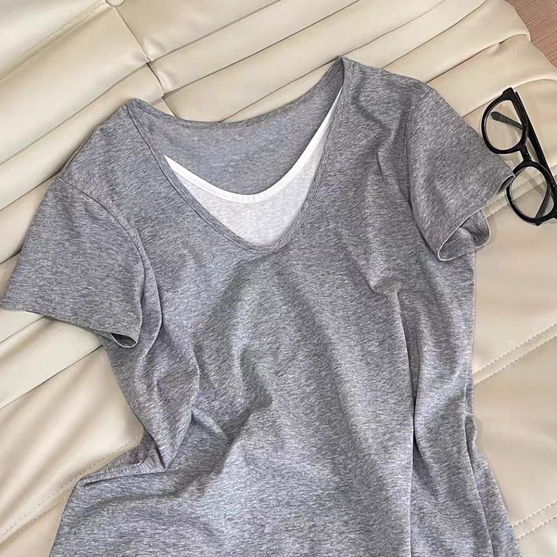 Vapetix S-XL Guangzhou Snowflakes Cotton 170g Korean Style Casual Loose Feeling Lazy Style V-Neck Short-Sleeve T