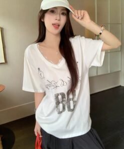 Schreibe die erste Bewertung für „Vapetix S-XL Home Factory American Casual Style Lace Splicing V-Neck Short Sleeve T-Shirt Loose Letter Print Top“ Antworten abbrechen
