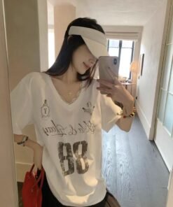 Schreibe die erste Bewertung für „Vapetix S-XL Home Factory American Casual Style Lace Splicing V-Neck Short Sleeve T-Shirt Loose Letter Print Top“ Antworten abbrechen