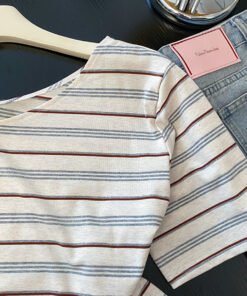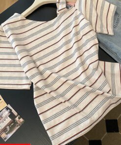 Vapetix S-XL Korean-style fresh and chic distinctive striped off-shoulder women’s summer new short-sleeve T-shir