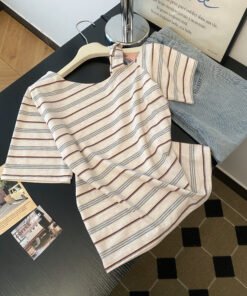 Vapetix S-XL Korean-style striped asymmetrical shoulder short-sleeve women’s thin summer new design unique absol