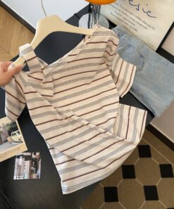 Vapetix S-XL Korean-style striped asymmetrical shoulder short-sleeve women’s thin summer new design unique absol