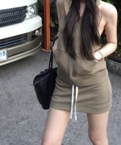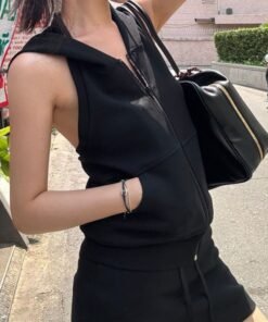 Vapetix S-XL Ladies‘ Casual Set 2025 Summer Backless Hooded Vest Top Tank Top with No Sleeve, Bodycon Short Skir