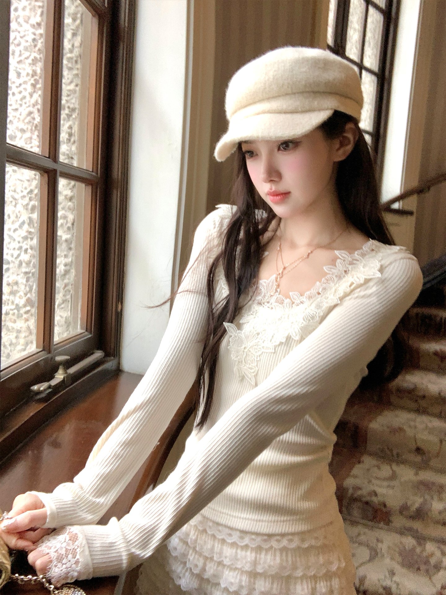 Vapetix S-XL Long-sleeve floral knitted base layer shirt for women: autumn-style layered look, figure-flattering