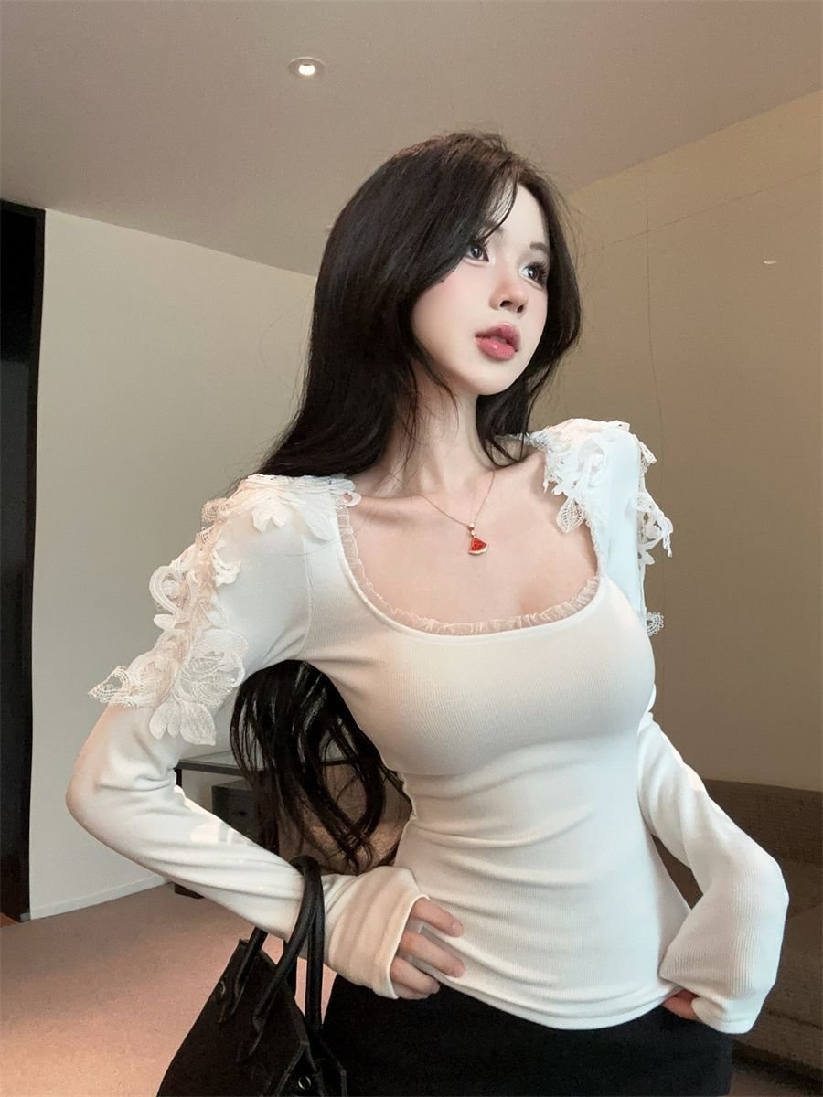 Vapetix S-XL Mousse cashmere heavy-duty embroidery long-sleeve t-shirt for women, autumn and winter pure desire