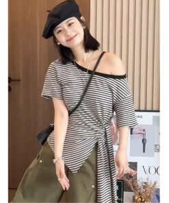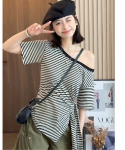 Schreibe die erste Bewertung für „Vapetix S-XL MR【Cool Cotton Color-Woven Stripes】Irregular Striped Asymmetrical Shoulder Short-Sleeve Women’s T-S“ Antworten abbrechen