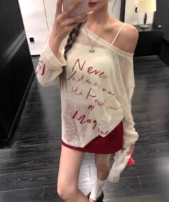 Vapetix S-XL MR【Cotton Linen Fabric】American Hot Girl Letter Print Sloping Shoulder Sun Protection Long Sleeve T