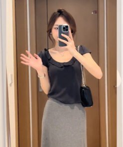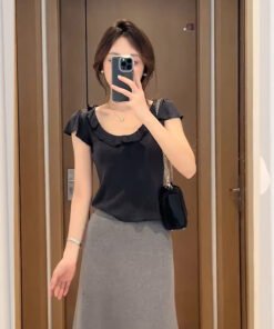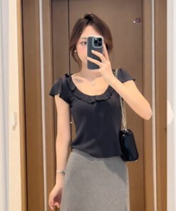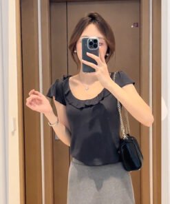 Vapetix S-XL MR【Original Quality】French Style Elegant Gray Ruffled Blouse Short Sleeve T-shirt Women’s Summer De