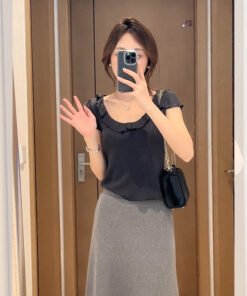 Vapetix S-XL MR【Original Quality】French Style Elegant Gray Ruffled Blouse Short Sleeve T-shirt Women’s Summer De