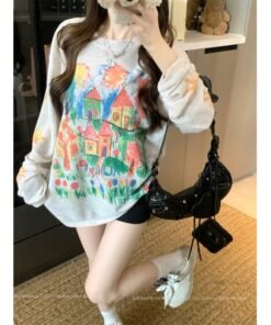 Vapetix S-XL MR【Original Rainbow Hemp】Retro Long-Sleeve T-Shirt for Women, Summer Hand-Painted Colorful Graffiti