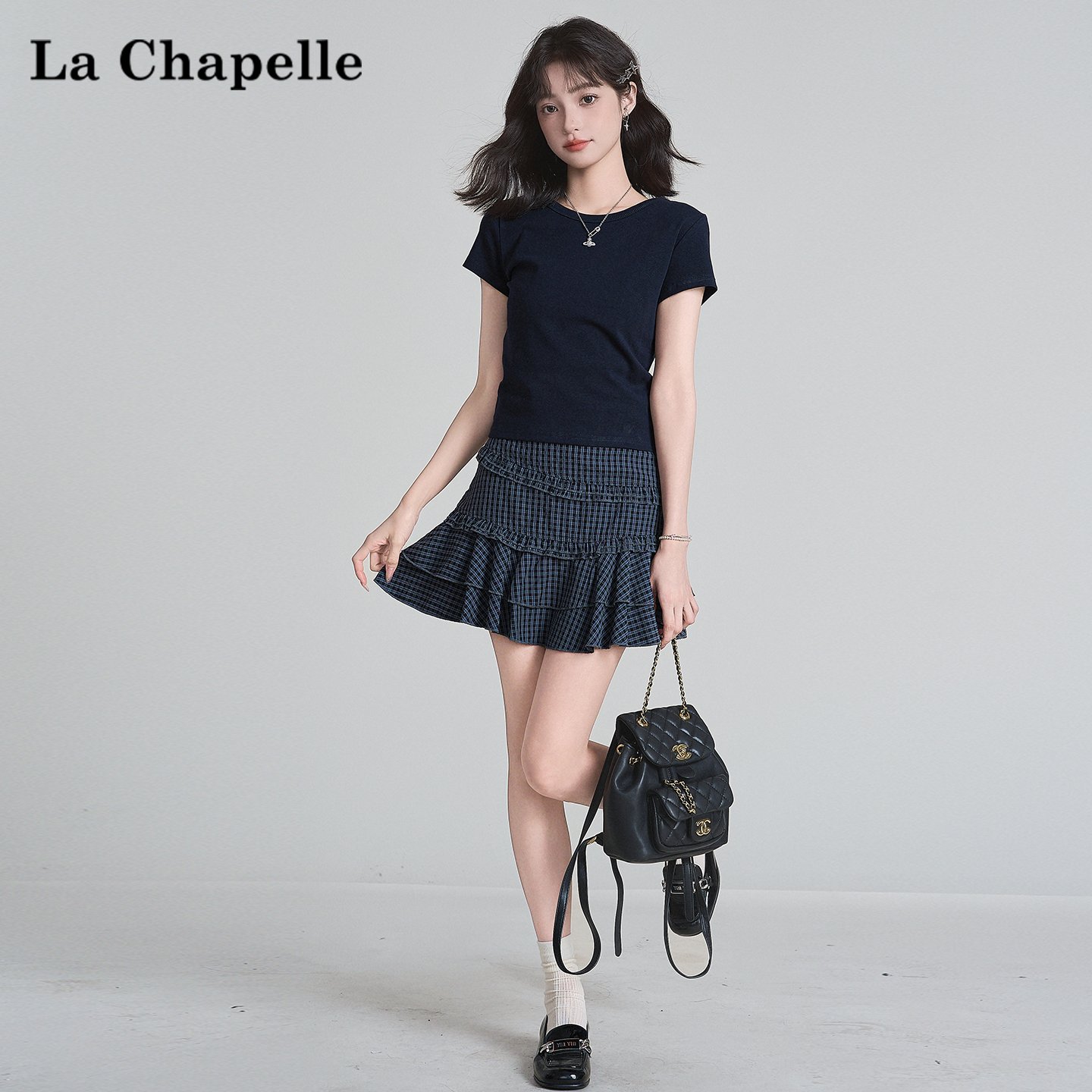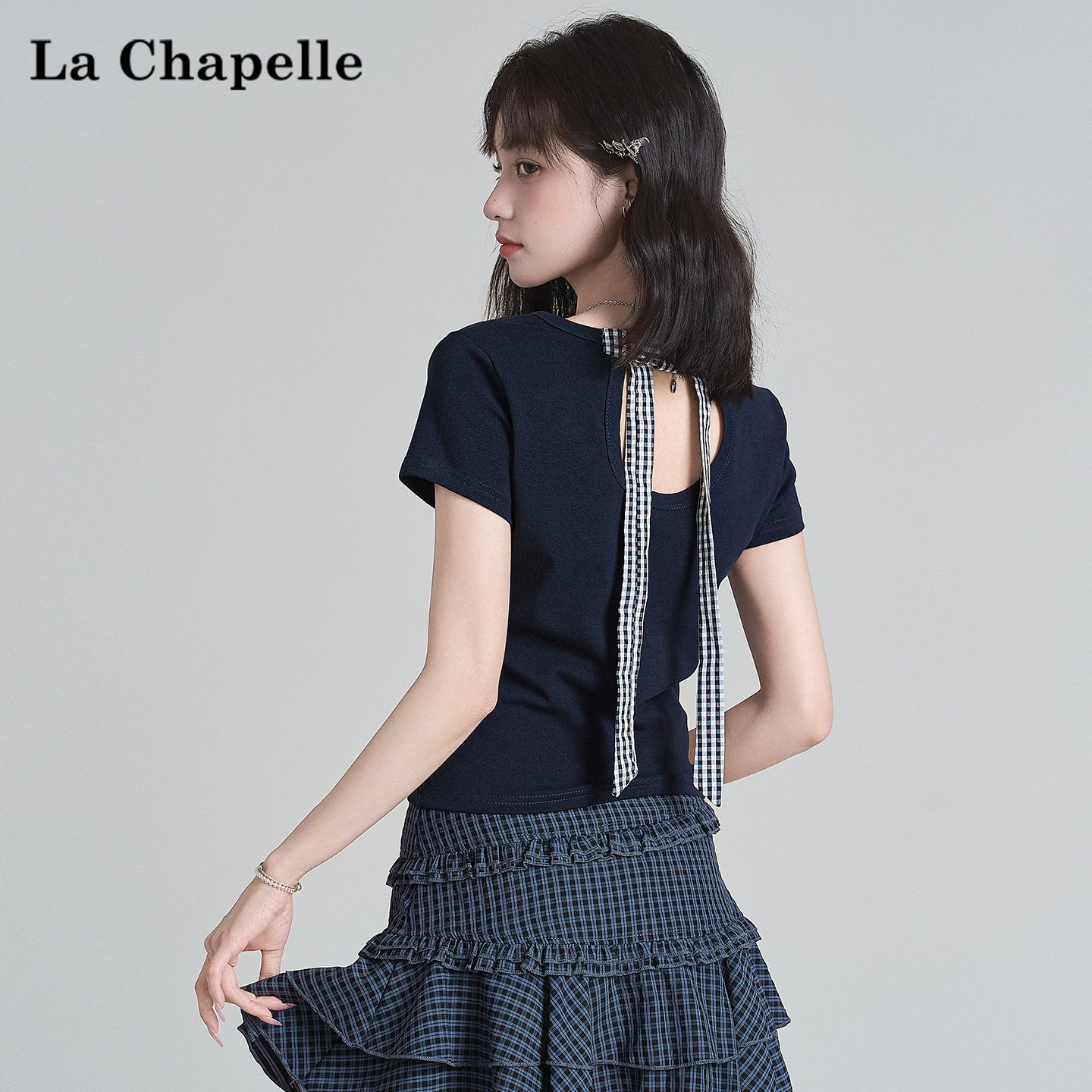 Vapetix S-XL MR [Modal Cotton] Plaid Lace-up Hollowed-out Design Short-sleeved T-shirt Women’s Summer Slim-fit B