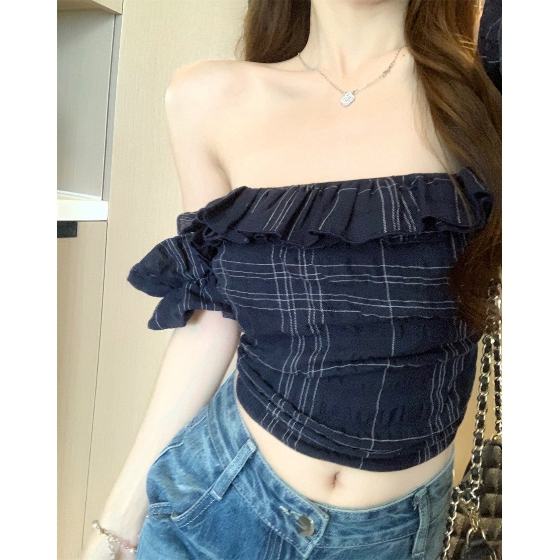 ![Vapetix S-XL MR [Original Fabric] Off-Shoulder Ruffled Short-Sleeved T-Shirt Women's Summer Retro Plaid Slim-Fit – Bild 3](https://vapetix.com/wp-content/uploads/2025/09/6f01055c-d43c-46b7-b5db-47a620246dce.jpeg)