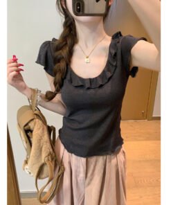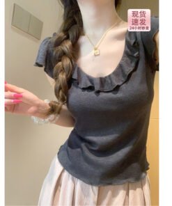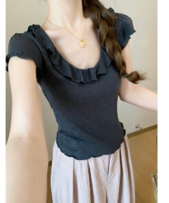 Schreibe die erste Bewertung für „Vapetix S-XL MR Original Version Korean Style Grey Wood Ear Edge Large U-Neck Straight Shoulder Short Sleeve T-S“ Antworten abbrechen