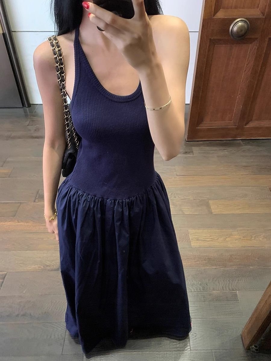 Vapetix S-XL Navy Blue U-Neck A-Line Suspender Dress Women’s Summer Slim-Fit Waist-Controlled Skirt Stylish Eleg