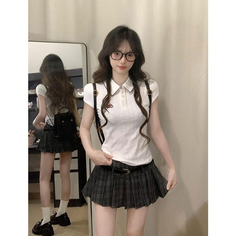 Vapetix S-XL Original Quality + Post-processed Collar Stand Short Sleeve T-shirt for Women, Slimming and Body-Fi