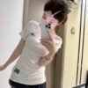 Vapetix S-XL Original Wrinkled Cotton Fabric Butterfly Bow Strapped Short-Sleeve Top for Women Short Length Figu