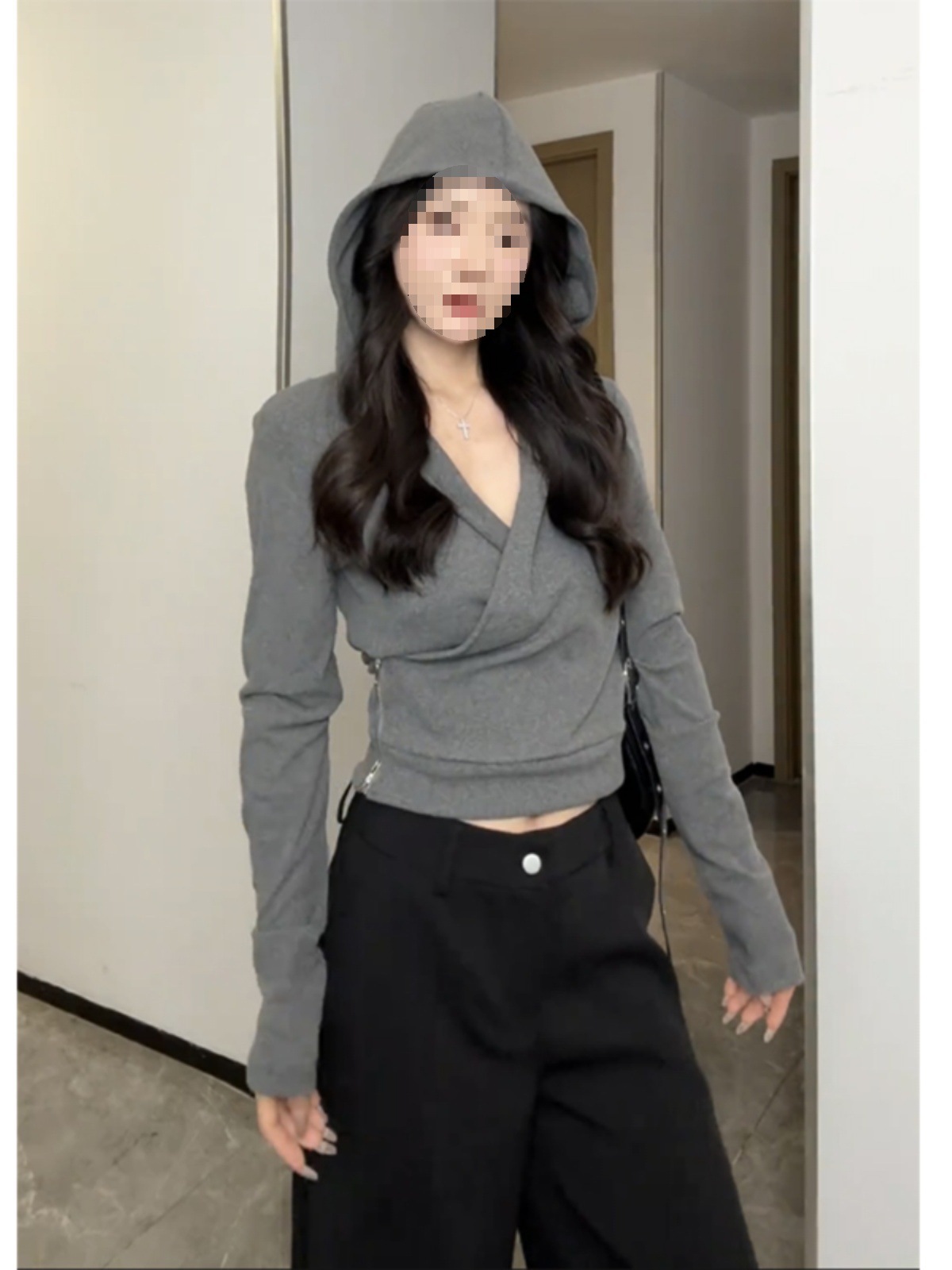 Vapetix S-XL plus size chubby girl Korean Style Design Sense Cross Hooded Long-sleeved Sweatshirt Women’s Autumn