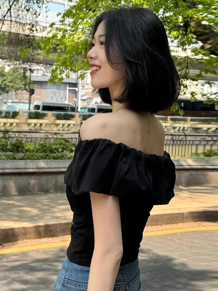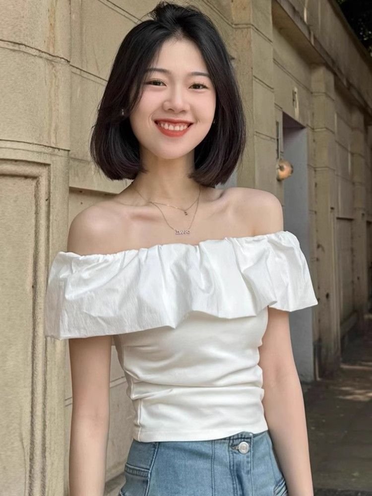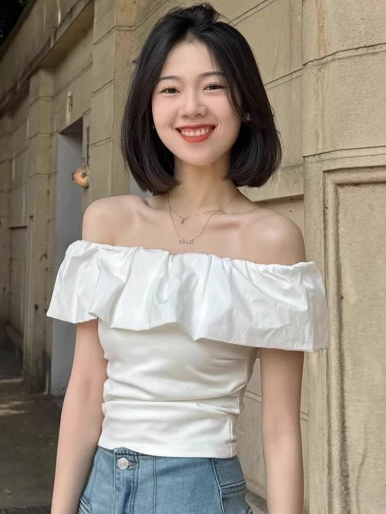 Vapetix S-XL Pure Desire White Lotus Edge One-Shoulder Short-Sleeve T-Shirt for Women Summer Sexy Shoulder-Strip