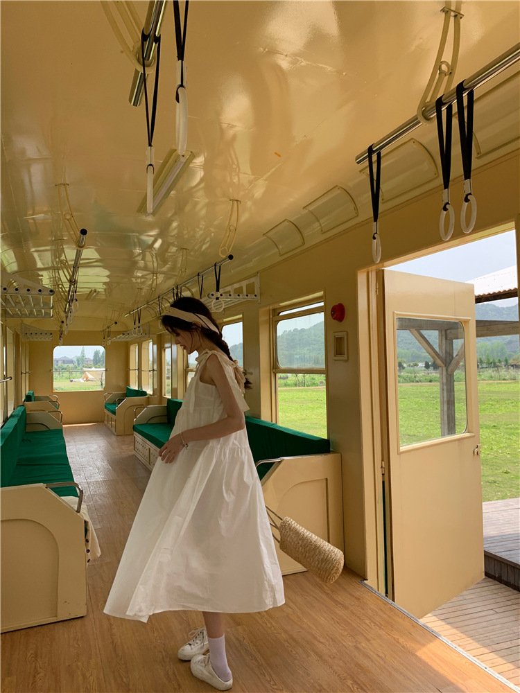 Vapetix S-XL White Strappy Dress Summer New Fresh Butterfly Bow Tie Belt Medium Long Length First Love Skirt Dre