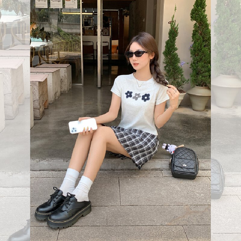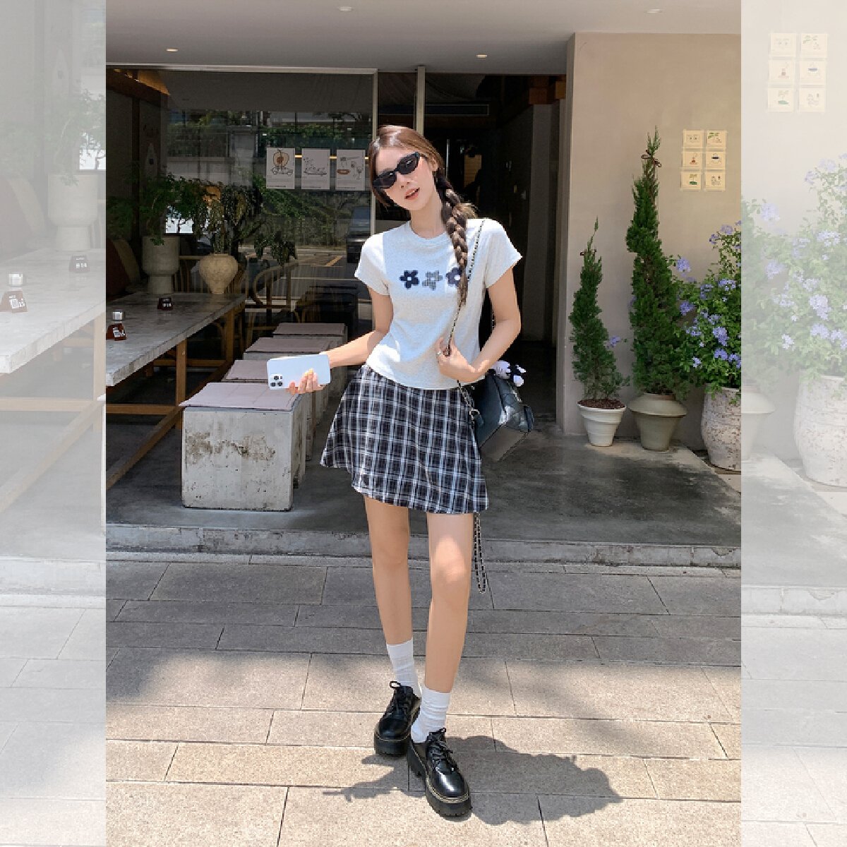 Vapetix S-XL Women’s 2025 Summer New Square Collar Short Sleeve T-Shirt with Gray Flocked Embroidery, Stylish To