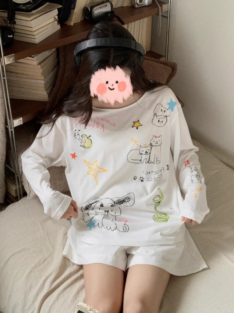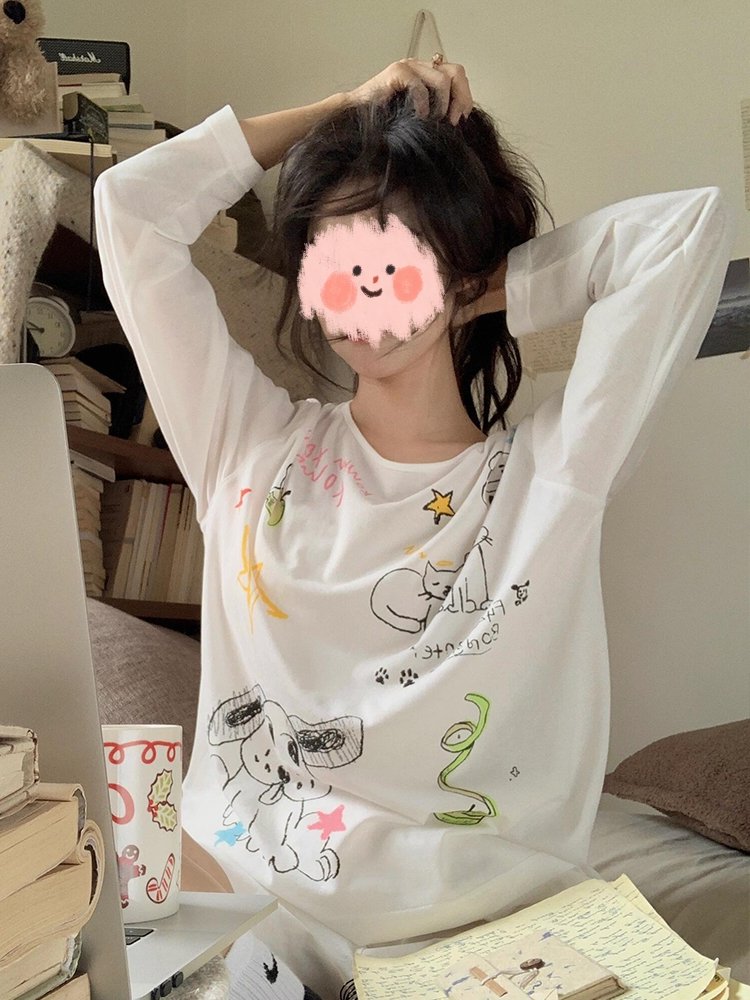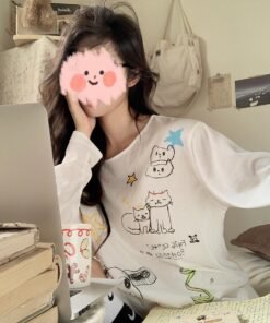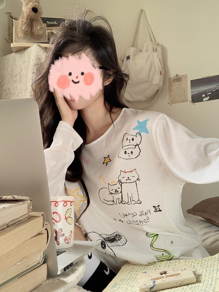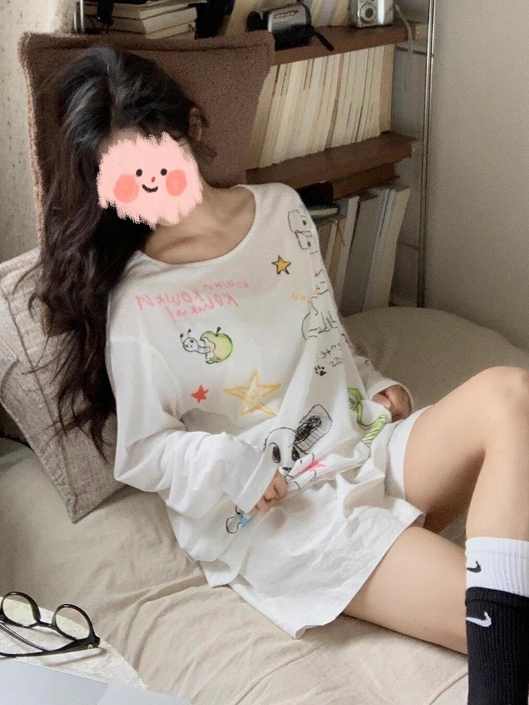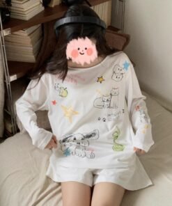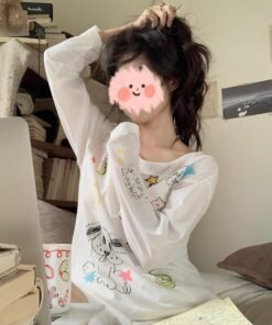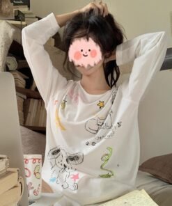 Vapetix S-XL Women’s Loose College Style Casual Matchable Long Sleeve T-Shirt with Cartoon Fun Sheer Design – 17