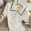 Vapetix S-XL Women’s Loose Fit Wide Shoulder Short Sleeve Polo Neck Casual Simple Summer Fashion T-Shirt for 202
