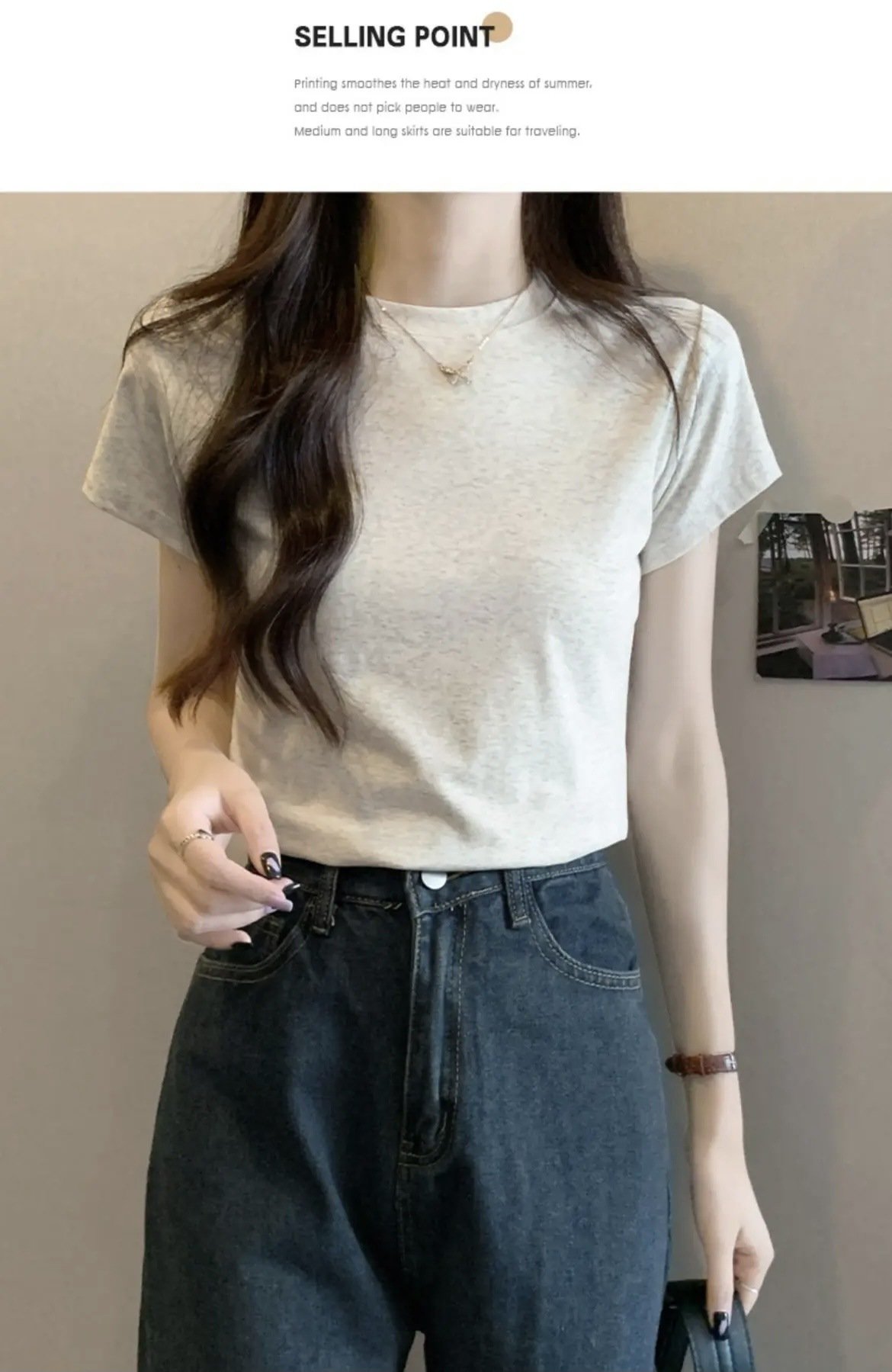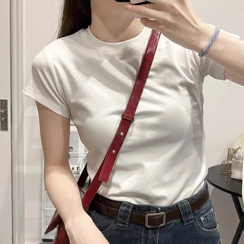 Vapetix S-XL Women’s Regular Shoulder Round Neck T-Shirt 2025 Pure Cotton Basic Short-Sleeve Top Summer Versatil