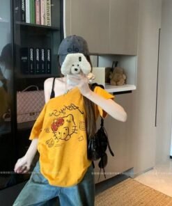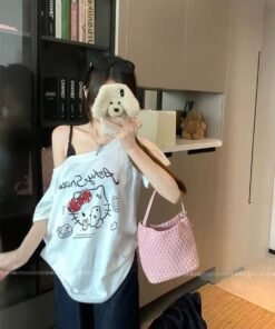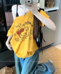 Vapetix S-XL Women’s Summer T-Shirt with Cartoon Print, Off-Shoulder Short Sleeve, 92% Cotton 8% Spandex