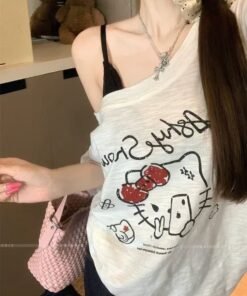 Vapetix S-XL Women’s Summer T-Shirt with Cartoon Print, Off-Shoulder Short Sleeve, 92% Cotton 8% Spandex