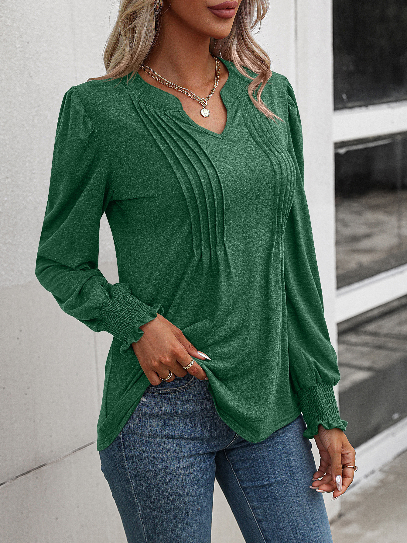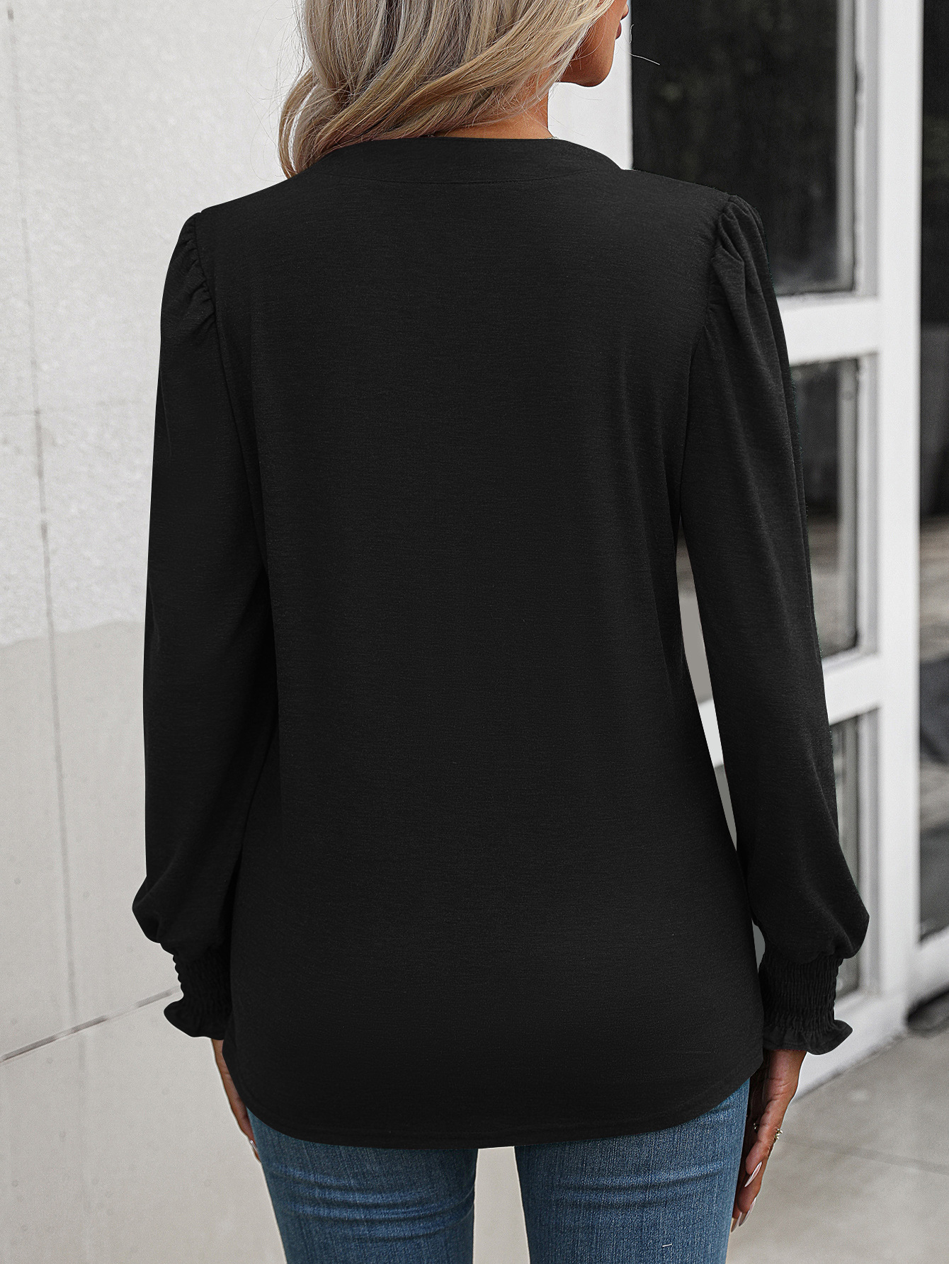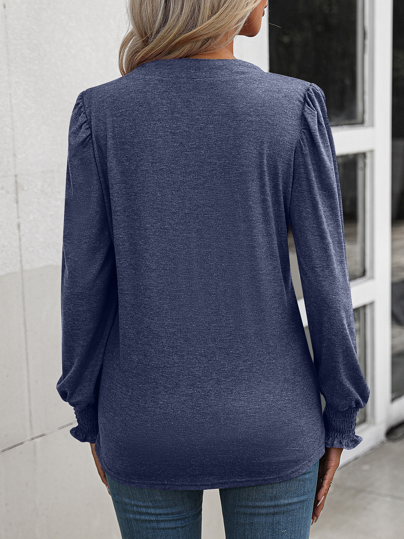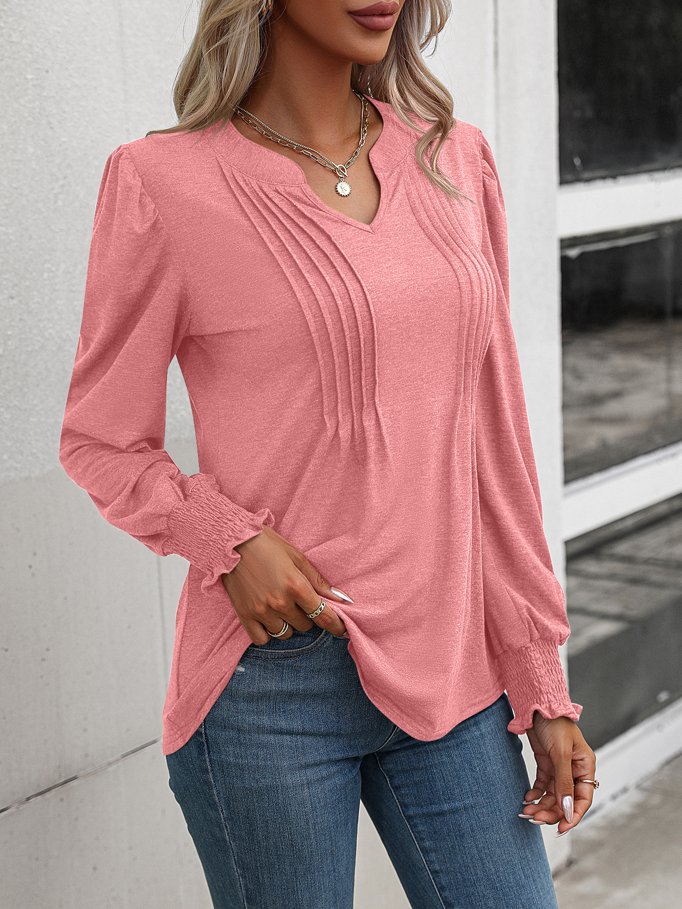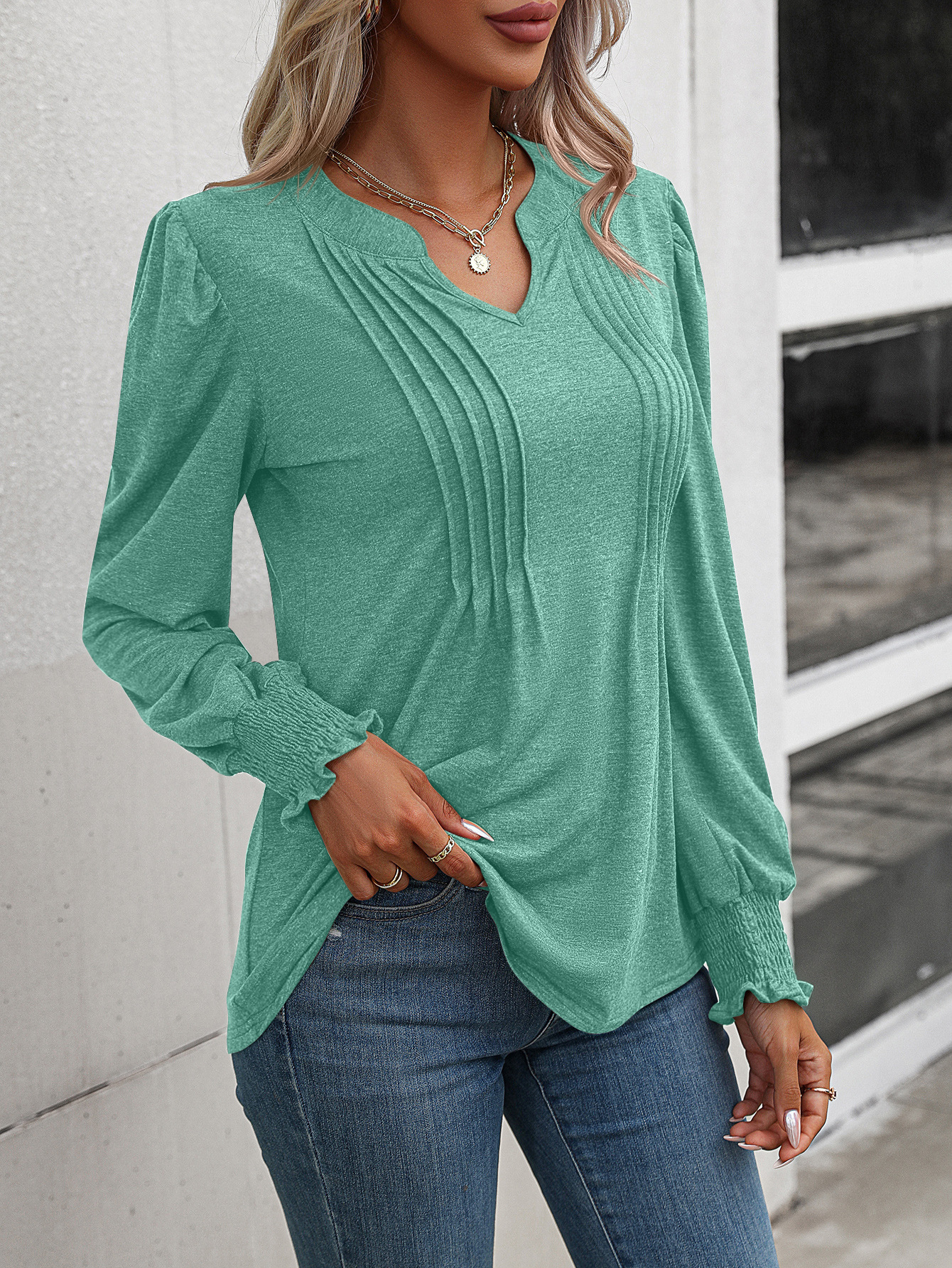 Vapetix S-XXL 2023 Amazon Autumn New European and American Women’s Solid Color Casual Top Bubble Sleeve V-Neck Lo