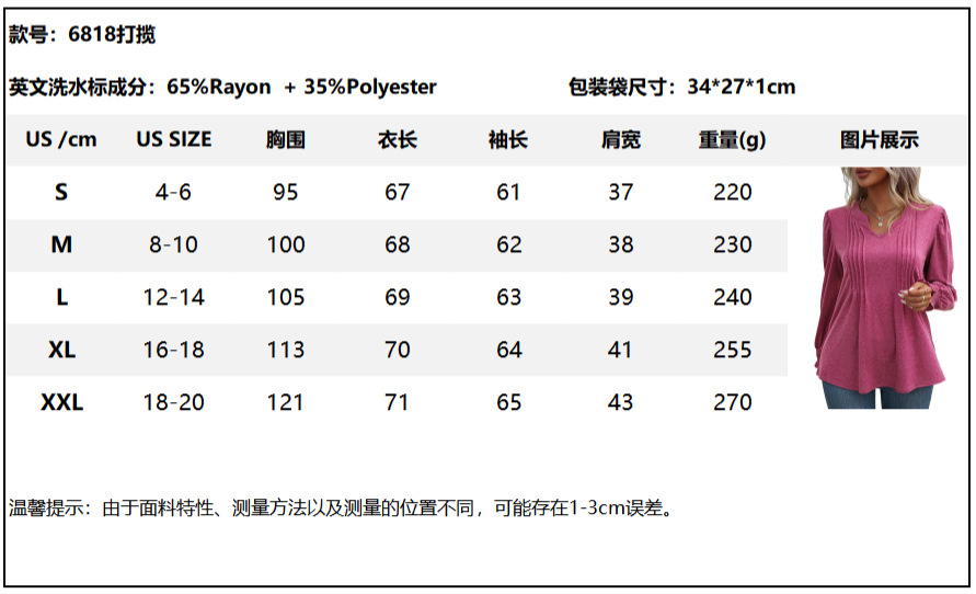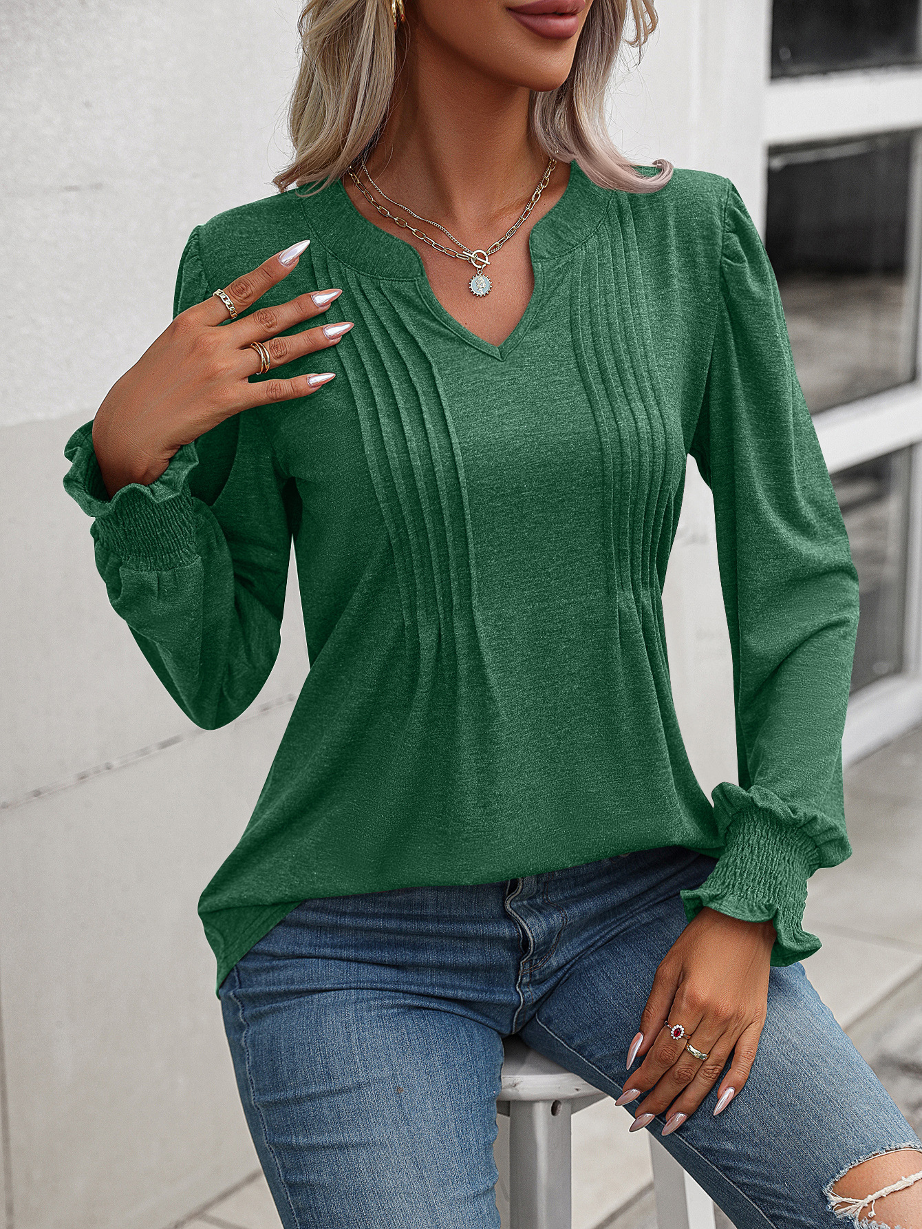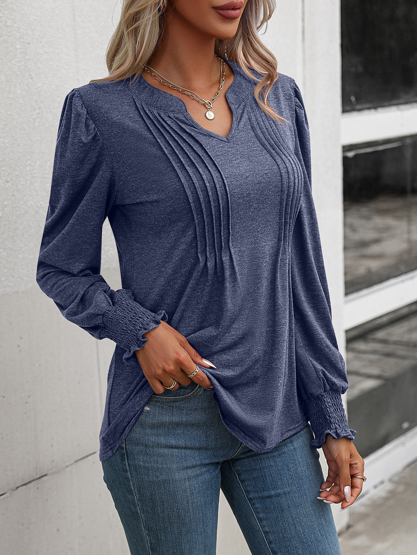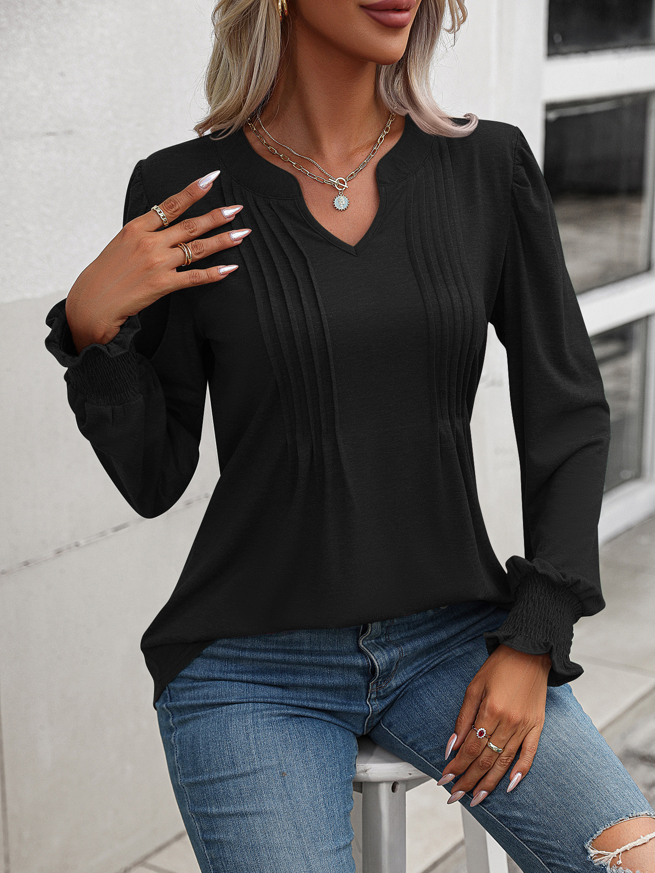 Vapetix S-XXL 2023 Amazon Autumn New European and American Women’s Solid Color Casual Top Bubble Sleeve V-Neck Lo