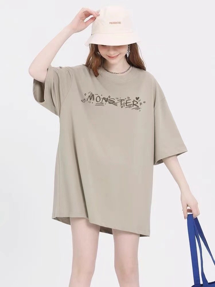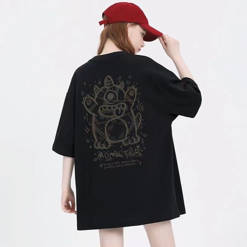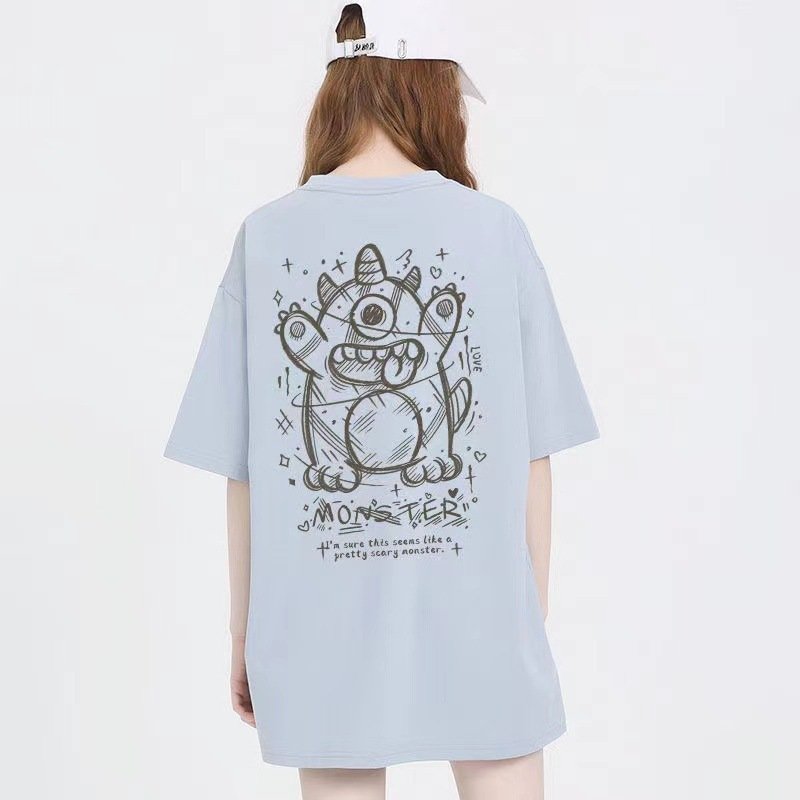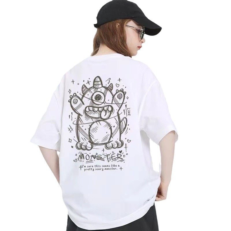 Vapetix S-XXL Cotton Pure Cotton Backless Collar Summer New Print Little Monster Crew Neck Short Sleeve T-Shirt for Wome