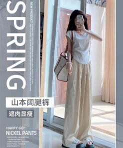 Vapetix S-XXL [Southeast Asia Original Fabric] Dopamine Lazy Yamamoto Women’s Trousers with Drape Straight Leg Ic