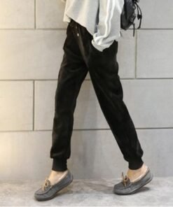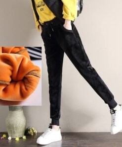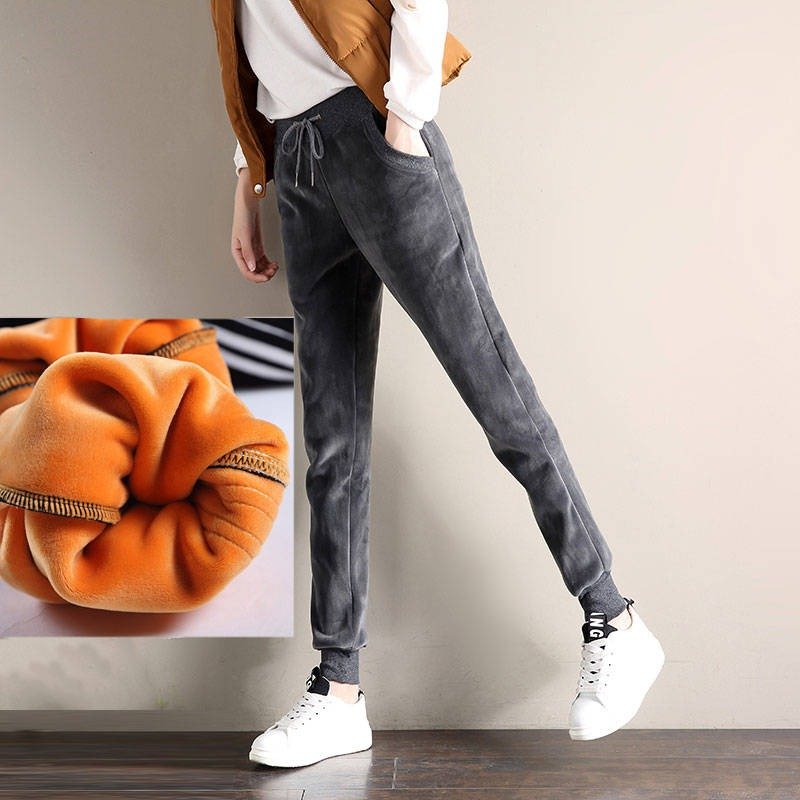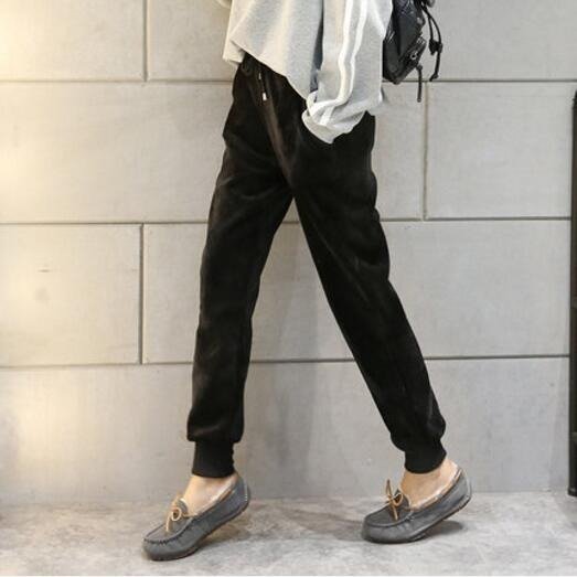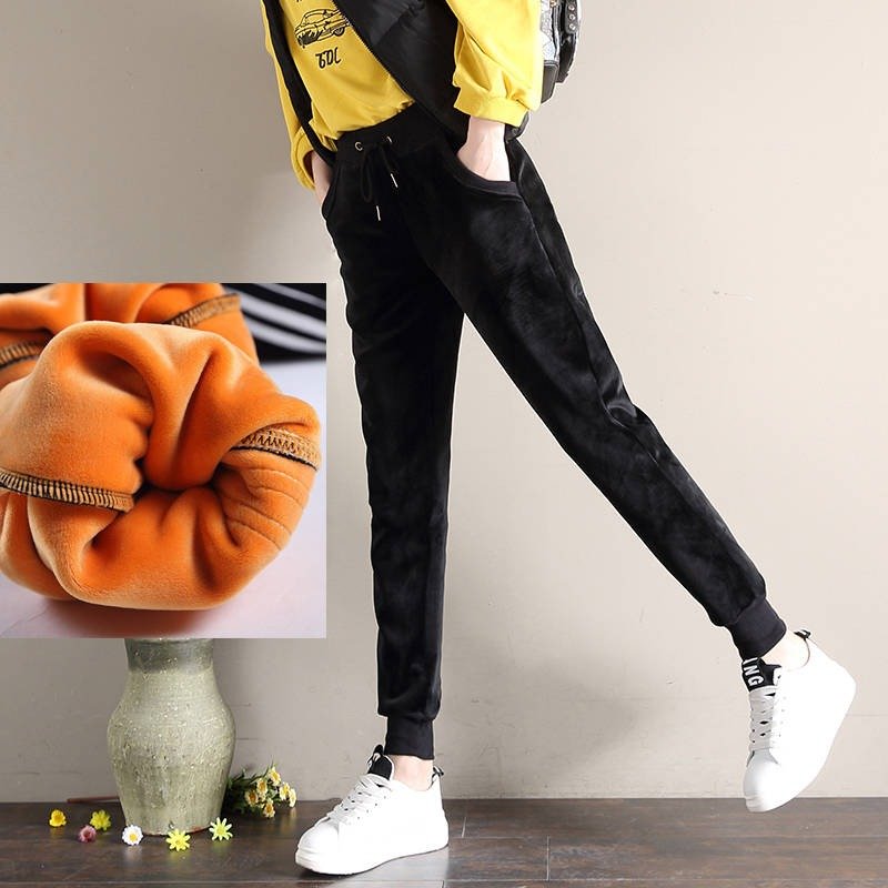 Vapetix S-XXL Women’s Golden Velvet Korean Style Loose Student Sweatpants with Fleece Lining, Thick, Small Leg He