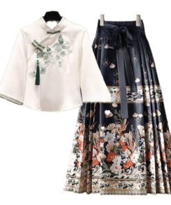 Vapetix Suggest 80-100斤 for M-4XL recommended for 180-200 lbs Mint Green New Chinese Style Ancient Wind Women’s Summer 2025 Chinese Style Hanfu Top Mamian Skirt
