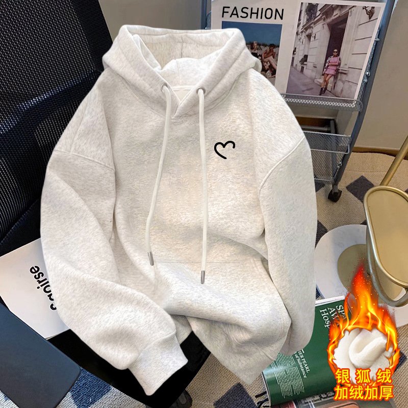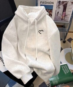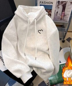 | Color | Angora Pink Heart-Shaped Hooded Sweatshirt, Cable-knit light gray hooded sweatshirt, Cotton-lined light brown hooded sweatshirt, Cotton-lined Light Gray Heartprint Hooded Sweatshirt, Glossy white heart sleeve hoodie, White Padded Hooded Sweatshirt |