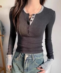 Vapetix S((weight 80-95))-2XL ((weight 125-140)) Unique Long-Sleeve Two-Piece Layering Top for Women – Autumn/Winter Chic High-End Slimming American