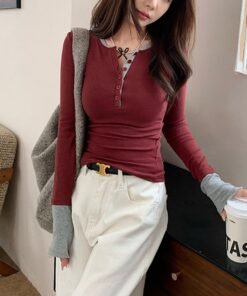 Vapetix S((weight 80-95))-2XL ((weight 125-140)) Unique Long-Sleeve Two-Piece Layering Top for Women – Autumn/Winter Chic High-End Slimming American