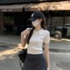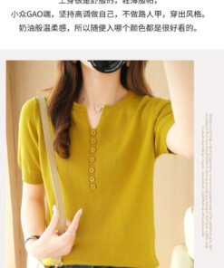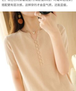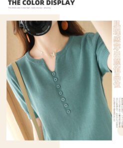 Vapetix Unisex size [80-145 lbs]-Unisex size [80-145 lbs] Knit Short Sleeve Women’s V-Neck Button Down T-Shirt Versatile Stylish Ice Silk Thin Loose Base Top