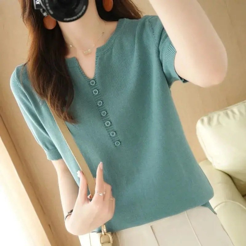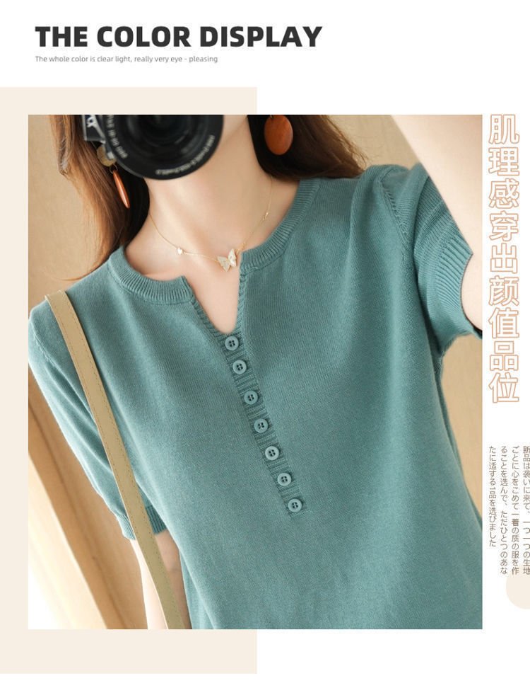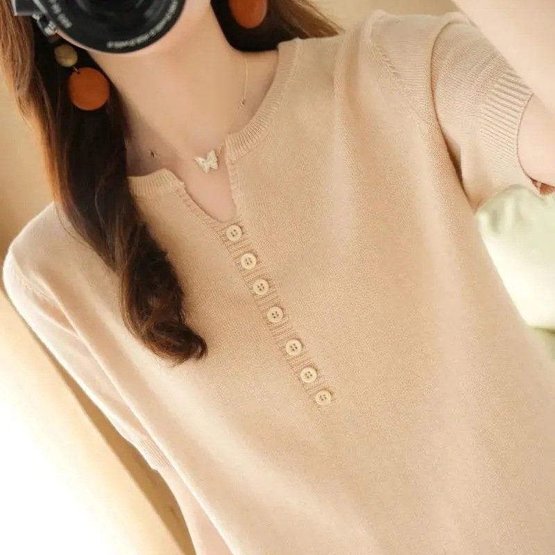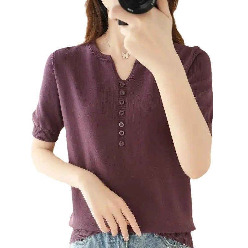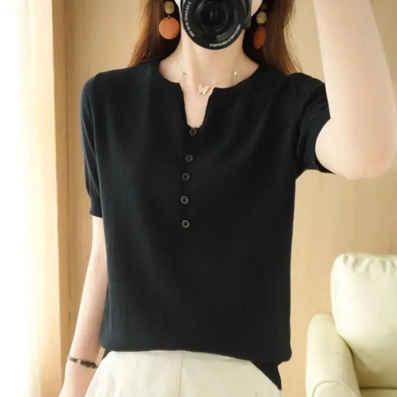 Vapetix Unisex size [80-145 lbs]-Unisex size [80-145 lbs] Knit Short Sleeve Women’s V-Neck Button Down T-Shirt Versatile Stylish Ice Silk Thin Loose Base Top